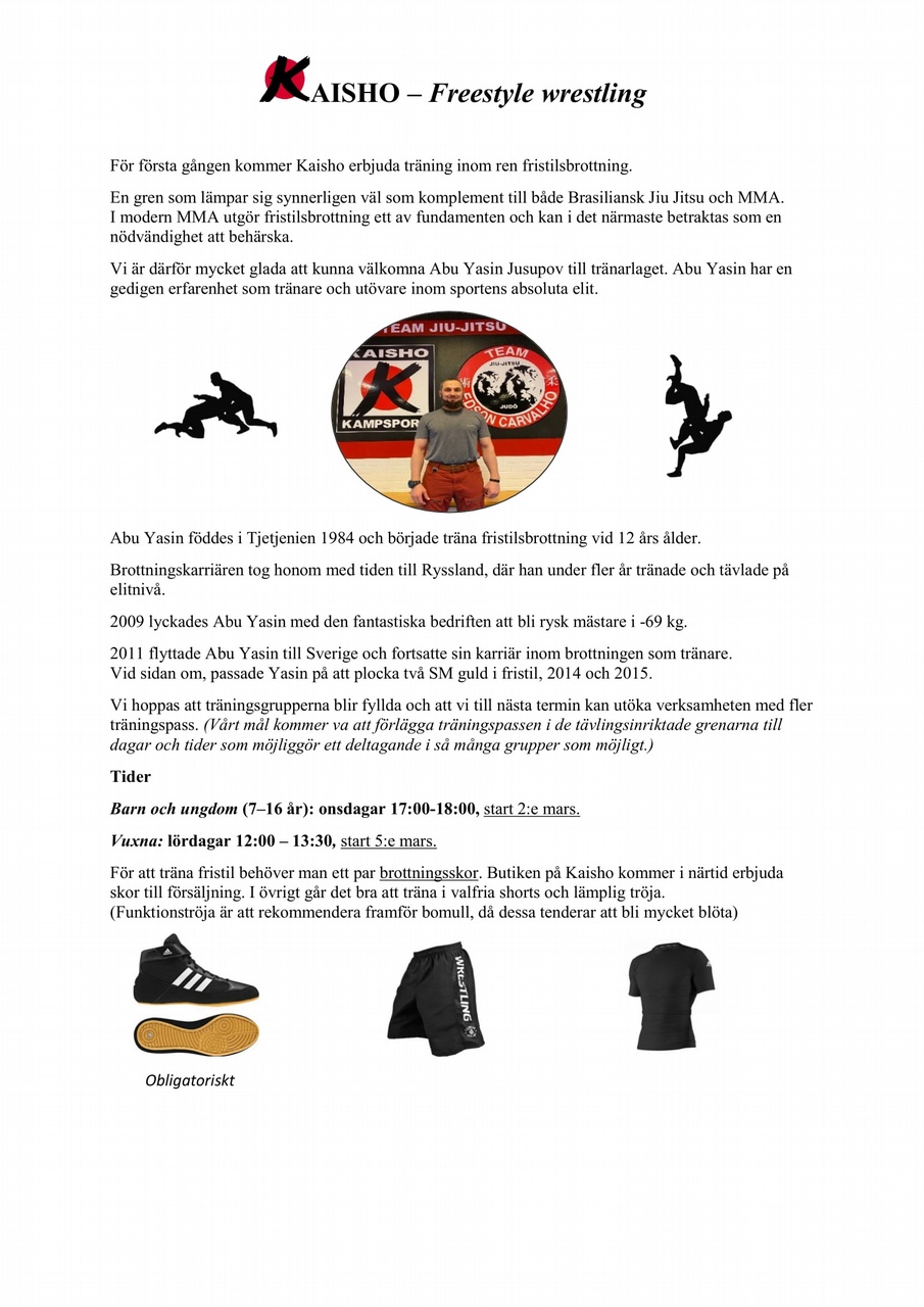 Till alla tränande/förälder till tränande på Kaisho Kampsport